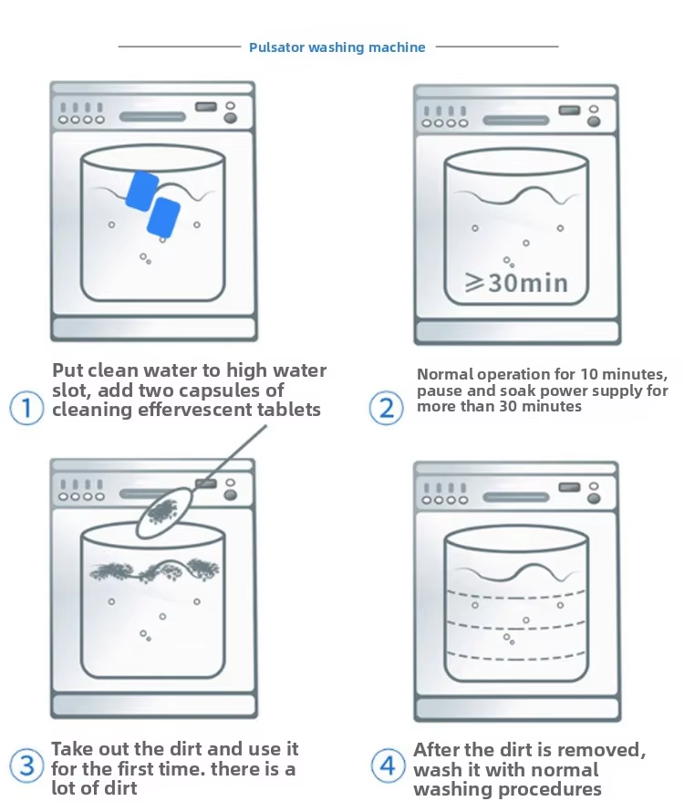 washing machine drum, add water to the appropriate level, and select a suitable washing cycle for cleaning. After cleaning,